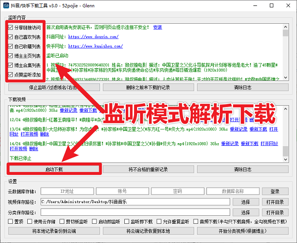 DyKsDownload抖音快手视频批量下载软件,支持主页批量、收藏、喜欢的视频及合集下载